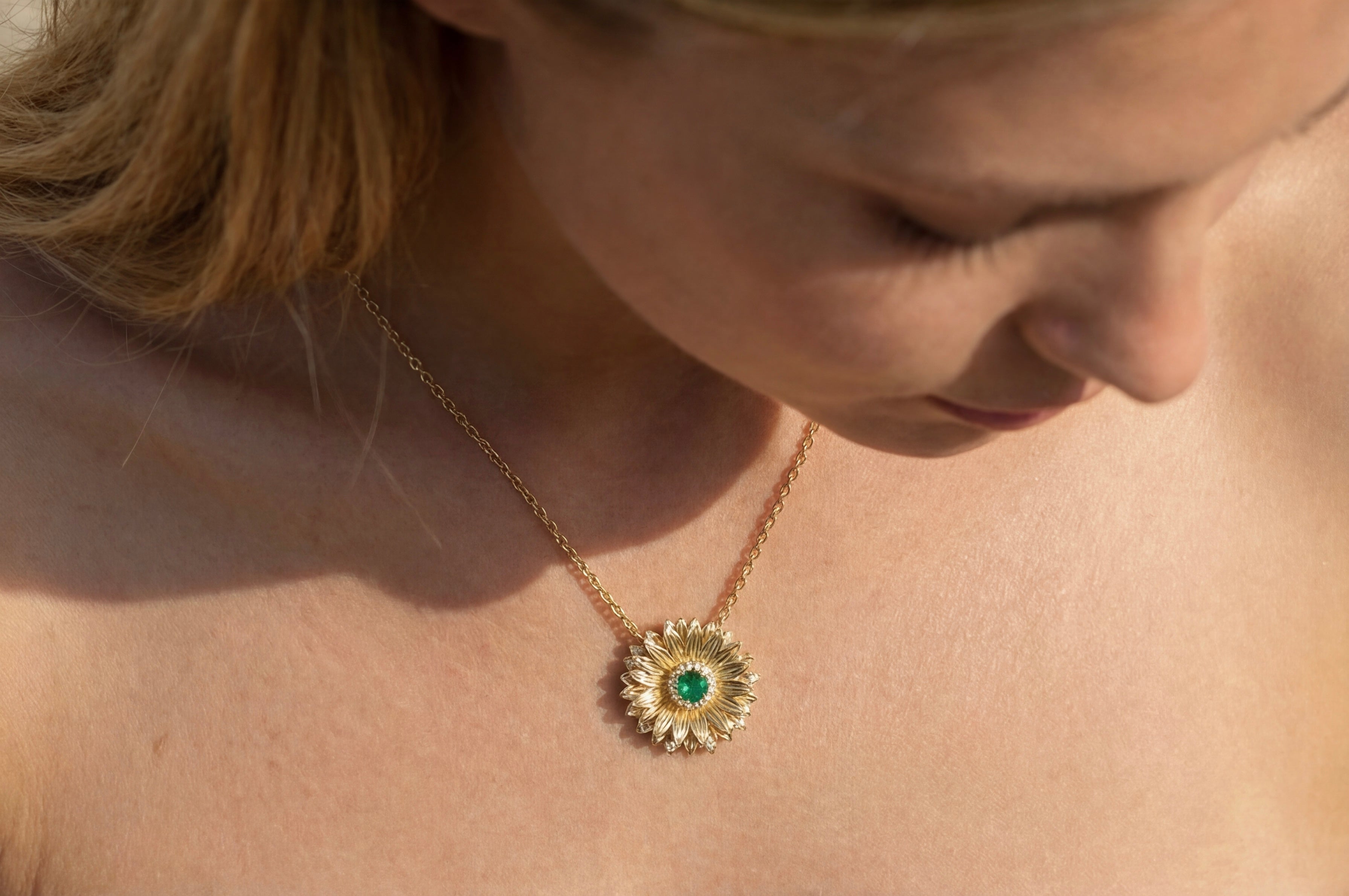 Designed to be worn close to the skin, this sunflower pendant reflects a sense of calm confidence — gentle, yet enduring.